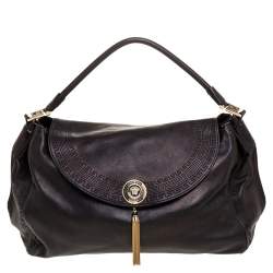 Versace Black Snakeskin Embossed Leather Metal Handle Hobo