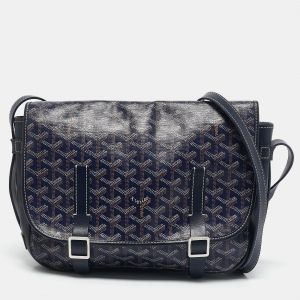 Goyard Navy Blue Goyardine Coated Canvas Belvedere MM Saddle Bag
