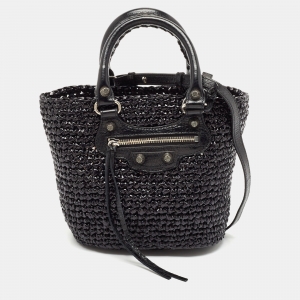 Balenciaga Black Raffia Effect Small Le Cagole Panier Tote