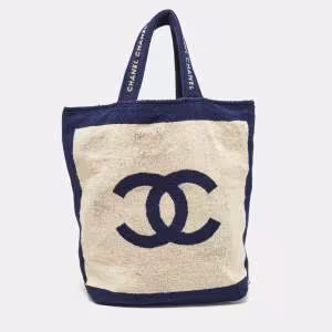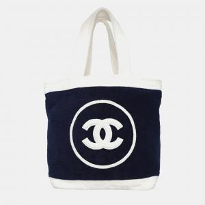 Chanel Navy Blue/Off White Terry Cotton CC Beach Tote