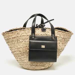 Dolce & Gabbana Natural/Black Raffia Kendra Basket Tote