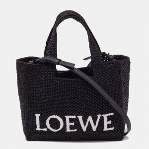Loewe Black Raffia Small Font Tote