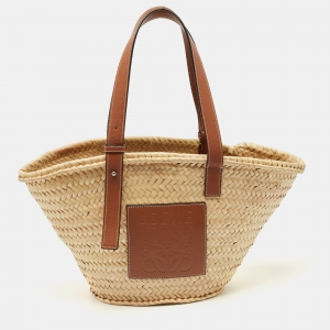 Loewe Beige/Brown Raffia and Leather Medium Basket Tote