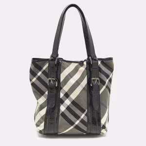 Burberry Black Nova Check Nylon And Patent Leather Small Lowry Tote