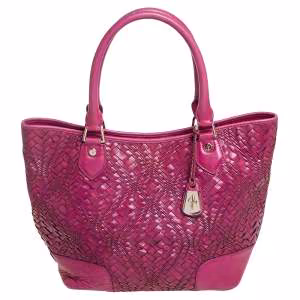 Cole Haan Burgundy Croc Embossed Leather Braided Handle Tote