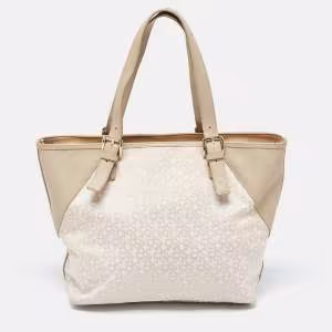 Dkny Cream/Beige Monogram Canvas and Leather Zip Tote