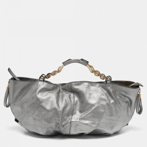 Escada Grey Textured Leather Expandable Side Zip Tote