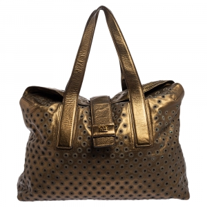 Escada Metallic Bronze Leather Rivet Detail Tote