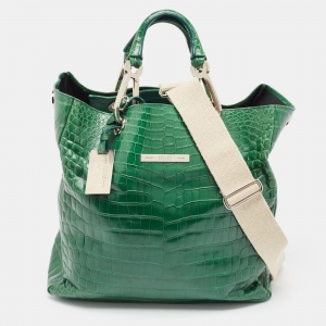 Gianfranco Ferre Green Crocodile Grommet Tote