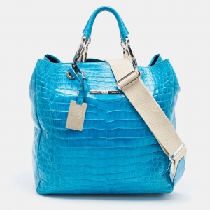 Gianfranco Ferre Turquoise Blue Crocodile Grommet Tote