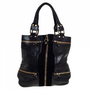 Jimmy Choo Black Leather and Suede Large Mona Tote