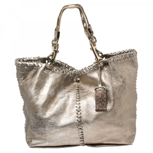 Jimmy Choo Metallic Gold Crinkled Leather Tote Bag