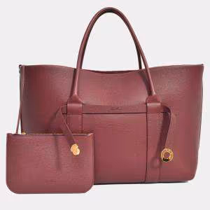 Loro Piana Burgundy Grained Leather 'Ghiera Shopper' Large Tote with Pouch