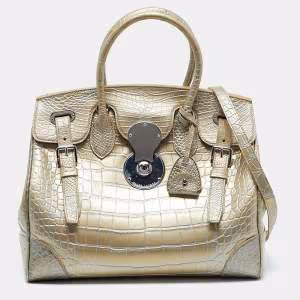 Ralph Lauren Gold Alligator Ricky 33 Tote