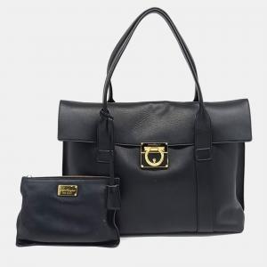 Salvatore Ferragamo Black Leather Large Beky Tote