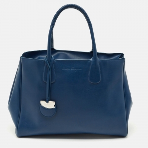 Salvatore Ferragamo Two Tone Blue Leather Small Amy Tote