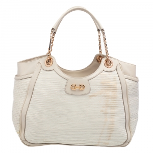 Salvatore Ferragamo Beige Signature Canvas and Leather Tote