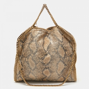 Stella McCartney Beige/Pink Faux Python Embossed Leather and Faux Patent Falabella Tote