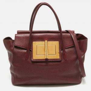 Tom Ford Dark Red Leather Turn-Lock Natalia Tote