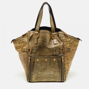 Yves Saint Laurent Metallic Gold/Black Leather Downtown Tote