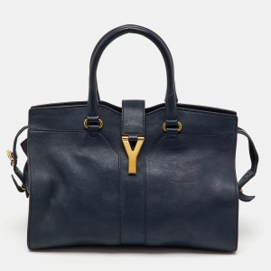 Yves Saint Laurent Navy Blue Leather Large Cabas Chyc Tote