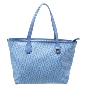 Aigner Blue Signature Coated Canvas Shopper Tote