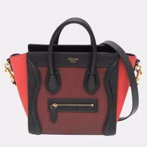 Celine Black Bordeaux Pink Luggage Leather Nano Shopper Handbag