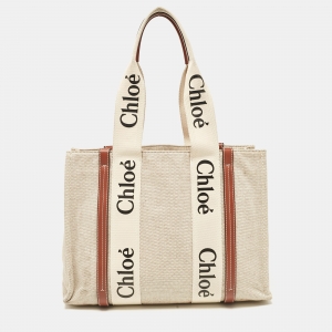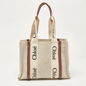 Chloe Beige/Brown Canvas and Leather Large Woody Tote