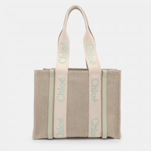 Chloe Beige Canvas Medium Woody Tote