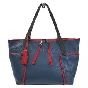 Cole Haan Red/Blue Pebbled Leather Tassel Shopper Tote