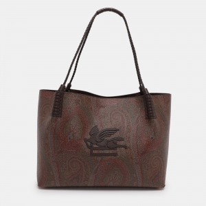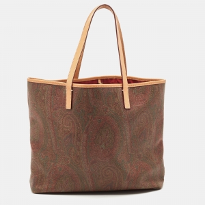 Etro Brown Paisley Printed Coated Canvas and Leather Shopper Tote