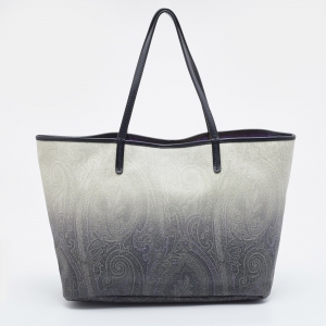 Etro Ombre Black/White Paisley Print Coated Canvas and Leather Shopper Tote