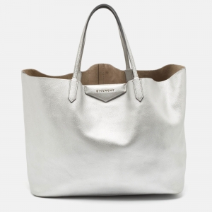 Givenchy Silver Leather Large Antigona Shopper Tote