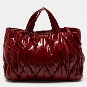 Miu Miu Red Matelasse Patent Leather Shopper Tote