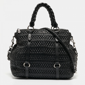 Miu Miu Black Matelasse Leather Shopper Tote