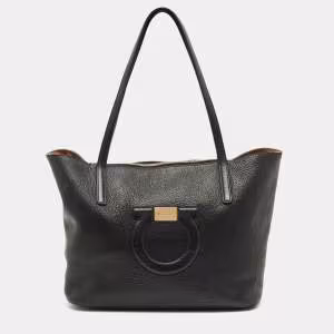 Salvatore Ferragamo Gancio City Black Leather Tote
