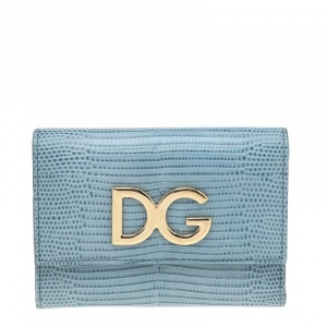 Dolce & Gabbana Blue Lizard Embossed Leather DG Trifold Wallet