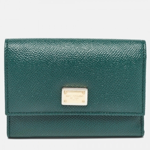 Dolce & Gabbana Green Leather Trifold Compact Wallet