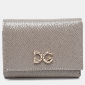Dolce & Gabbana Taupe Leather Trifold Wallet