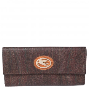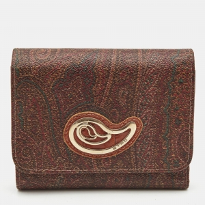 Etro Brown Paisley Coated Canvas Trifold Continental Wallet