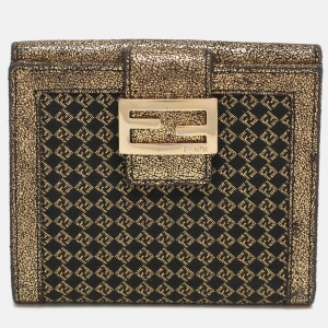 Fendi Baguette Gold Canvas and Leather Bifold Wallet