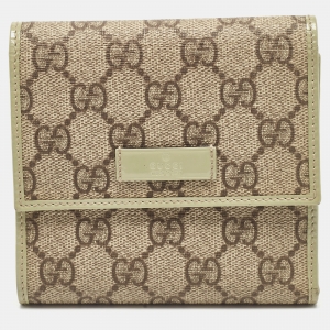 Gucci Beige/Green Supreme Canvas and Patent Leather Trifold Compact Wallet
