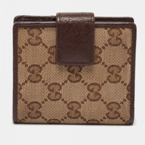 Gucci Beige/Brown GG Canvas and Leather Flap Bifold Wallet
