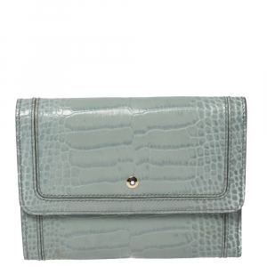 Montblanc Blue Croc Embossed Leather Trifold Wallet