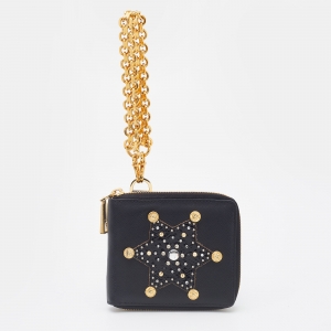 Versace Black Leather Embellished Zip Around Bifold Wallet