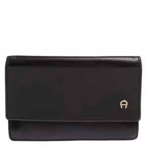 Aigner Black Leather Envelope Flap Compact Wallet