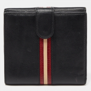 Bally Black Leather Web Detail Bifold Wallet