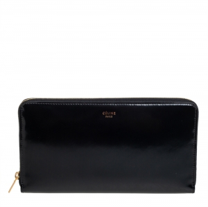 Celine Black Patent Continental Zip Around Wallet