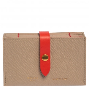 Celine Beige/Red Leather Accordion Card Holder