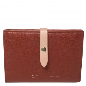 Celine Copper Brown/Pink Grained Leather Multifunction Strap Wallet